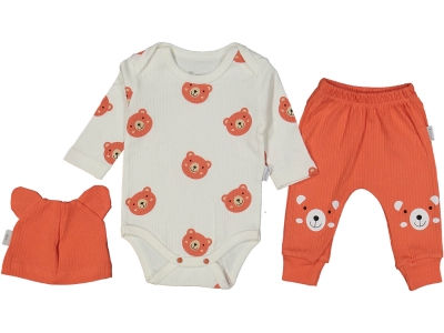 ERKEK 3/12 AY AYICIK BASKILI KULAKLI ŞAPKALI 3LU TAKIM