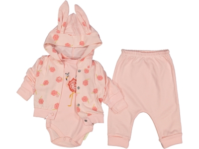 KIZ 3/9 AY GÜL KANAVİÇELİ KULAKLI KAPŞONLU 3LÜ TAKIM